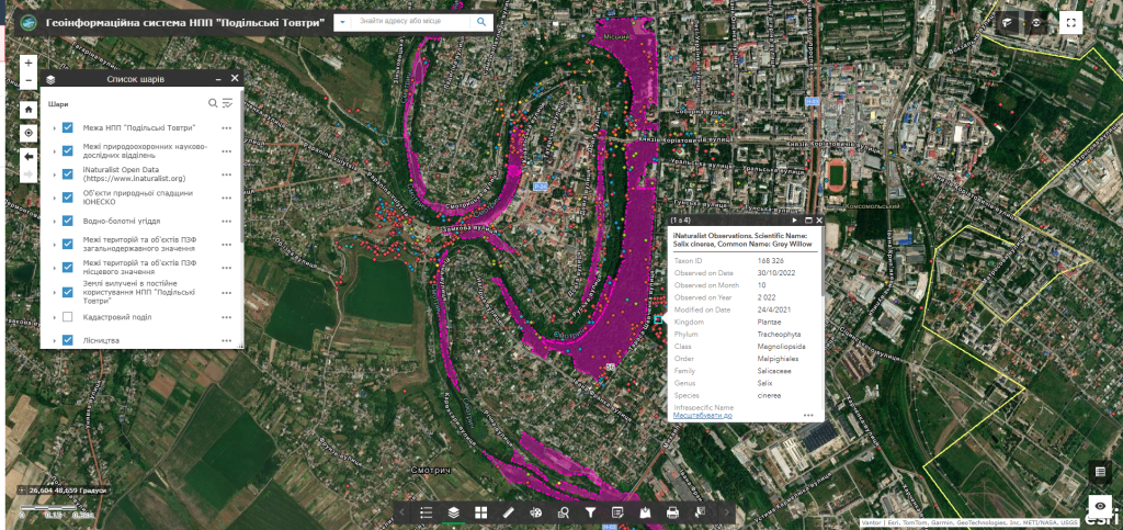 Геоінформаційна система національного природного парку “Подільські Товтри” – це картографічний вебпродукт, призначений для збереження, накопичення та відображення інформації про об’єкти та території парку. Інтерактивна карта складається з системи географічних даних (просторової прив’язки) і територій природно-заповідного фонду з чисельними природно-заповідними об’єктами, додатковою інформацією про території та можливістю детального ознайомлення з цими об‘єктами.