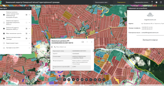 Геоінформаційна система Сквирської міської територіальної громади забезпечує зручне та наочне відображення всього земельного фонду громади з точними даними щодо кожної ділянки.